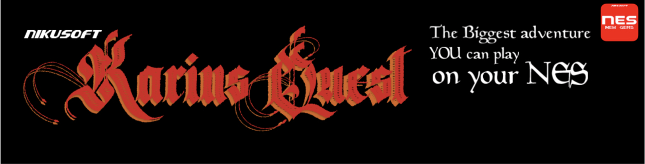 Karin's Quest is the ultimate adventure for your NES, that features Karin, an elf that is discovering the secret art of the “Combat of the Seven Spirits” each being a new move that he unlocks by finding the seven “Ancient Masters” each located in one of the seven lands that build up the map and the “Kingdom of Vertonia” that has been ruled by the evil “Gerber”, a demon from another world that Karin must defeat in order to rescue the trapped “King Verter” and save the Kingdom.